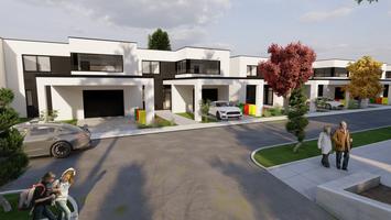 Radové rodinné domy v projekte sú navrhnuté ako dvojpodlažné jednotky bez podkrovia a pivnice, s dennou časťou na prízemí a nočnou časťou na poschodí. Každý dom má garáž, technickú miestnosť a prístrešok pre autá, pričom je možné zaparkovať až tri vozidlá. Dôraz sa kladie na zelené riešenia, ako sú zelené ploty a zachytávanie dažďovej vody na zavlažovanie.