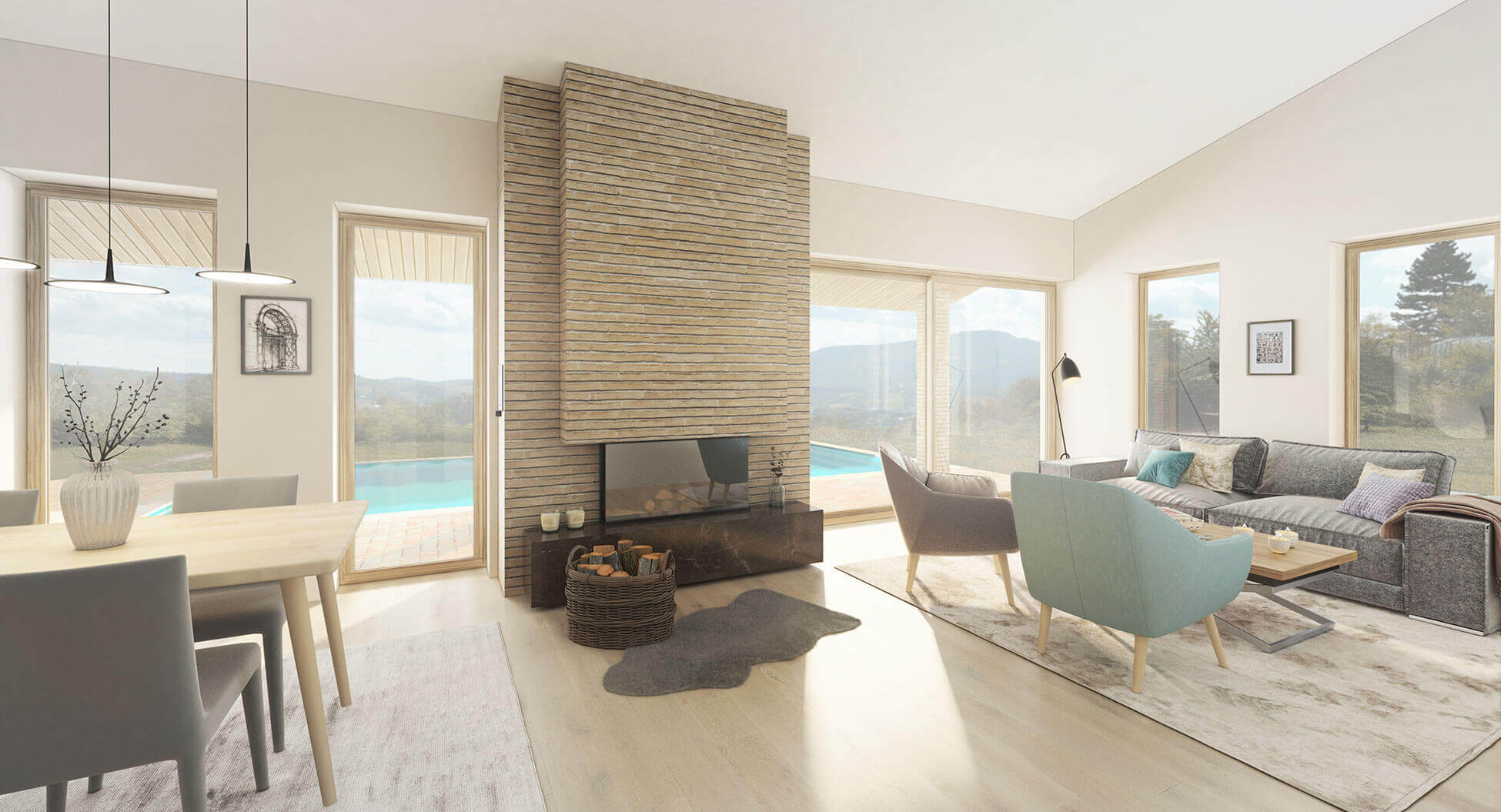 Na výber je osem typov domov, od jednopodlažných po poschodové a radové zástavby, všetky navrhnuté s dôrazom na energetickú efektívnosť a moderné technológie. Domy sú vybavené smart systémami, prípravou na využitie dažďovej vody a fotovoltaiku, čo zabezpečuje ekologické a úsporné bývanie.