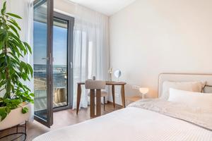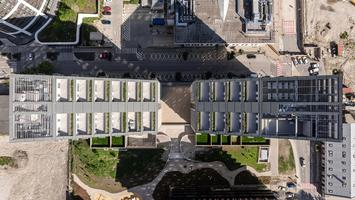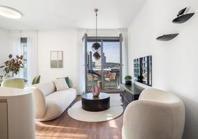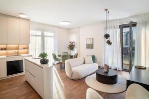 Ponuka zahŕňa široké spektrum dispozícií – od menších bytov pre jednotlivcov až po priestranné prémiové jednotky na najvyšších podlažiach s terasami alebo predzáhradkami. Každý byt má dostatok prirodzeného svetla, zdravé vnútorné prostredie vďaka stropnému vykurovaniu a chladeniu, aj inteligentný systém riadenej rekuperácie. O pohodlie sa stará aj nonstop concierge služba.