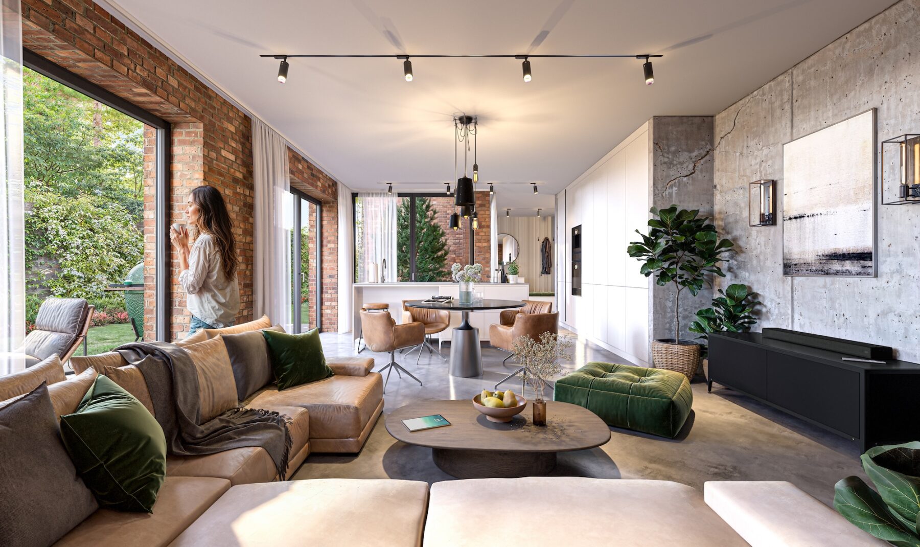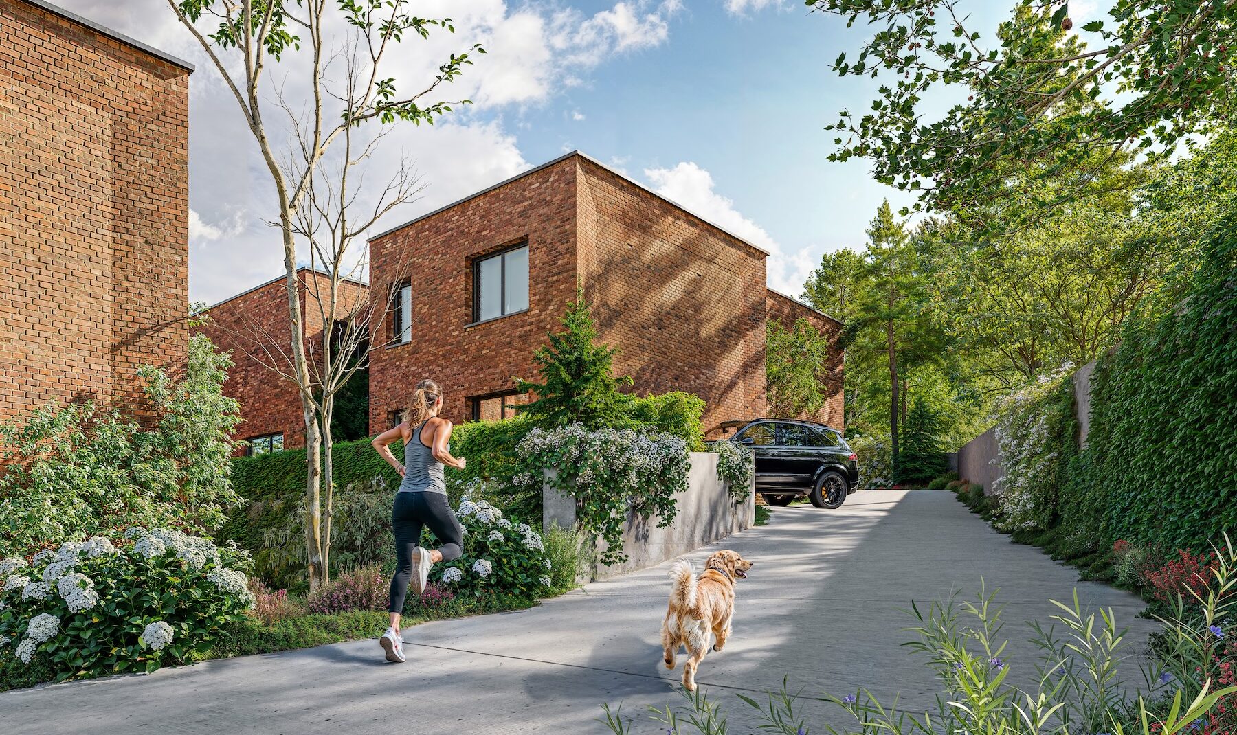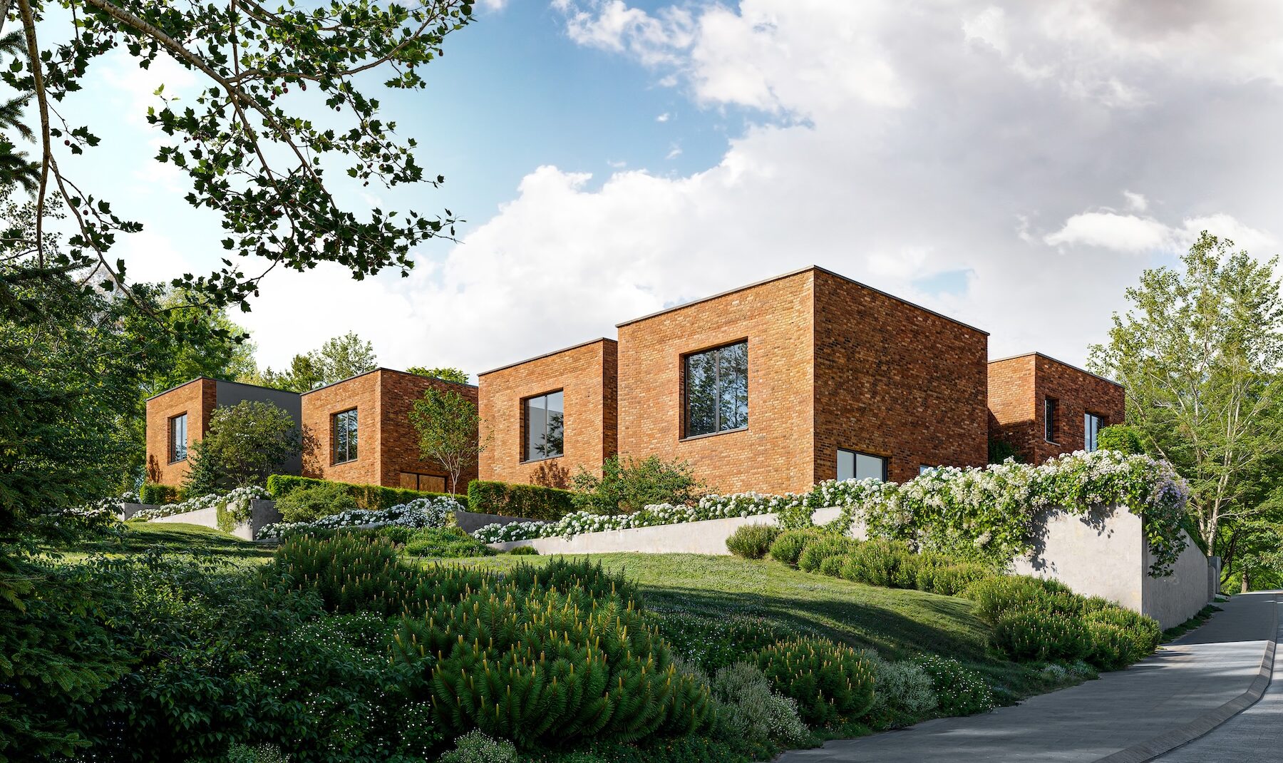 Domy zaujmú čistým architektonickým štýlom s tehlovou fasádou v teplých tónoch, ktorá ladí s prírodným okolím Malých Karpát. Veľkoformátové okná prepájajú interiér so záhradou a zabezpečujú dostatok prirodzeného svetla. Vnútorné priestory sú navrhnuté s dôrazom na funkčnosť, pohľadový betón a prírodné drevo dotvárajú moderný, no zároveň útulný charakter bývania.