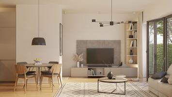 Prízemné byty majú vlastné oplotené záhradky, ktoré umožňujú priamy vstup z obývačky do zelene. Trojizbové byty na vyšších podlažiach disponujú priestrannými balkónmi, zatiaľ čo menšie jednotky sú riešené bez balkóna. V štandarde je zahrnutá klimatizácia, exteriérové žalúzie s elektrickým pohonom aj moderné vykurovanie – od elektrického podlahového kúrenia a rekuperácie až po tepelné čerpadlá v trojizbových bytoch.