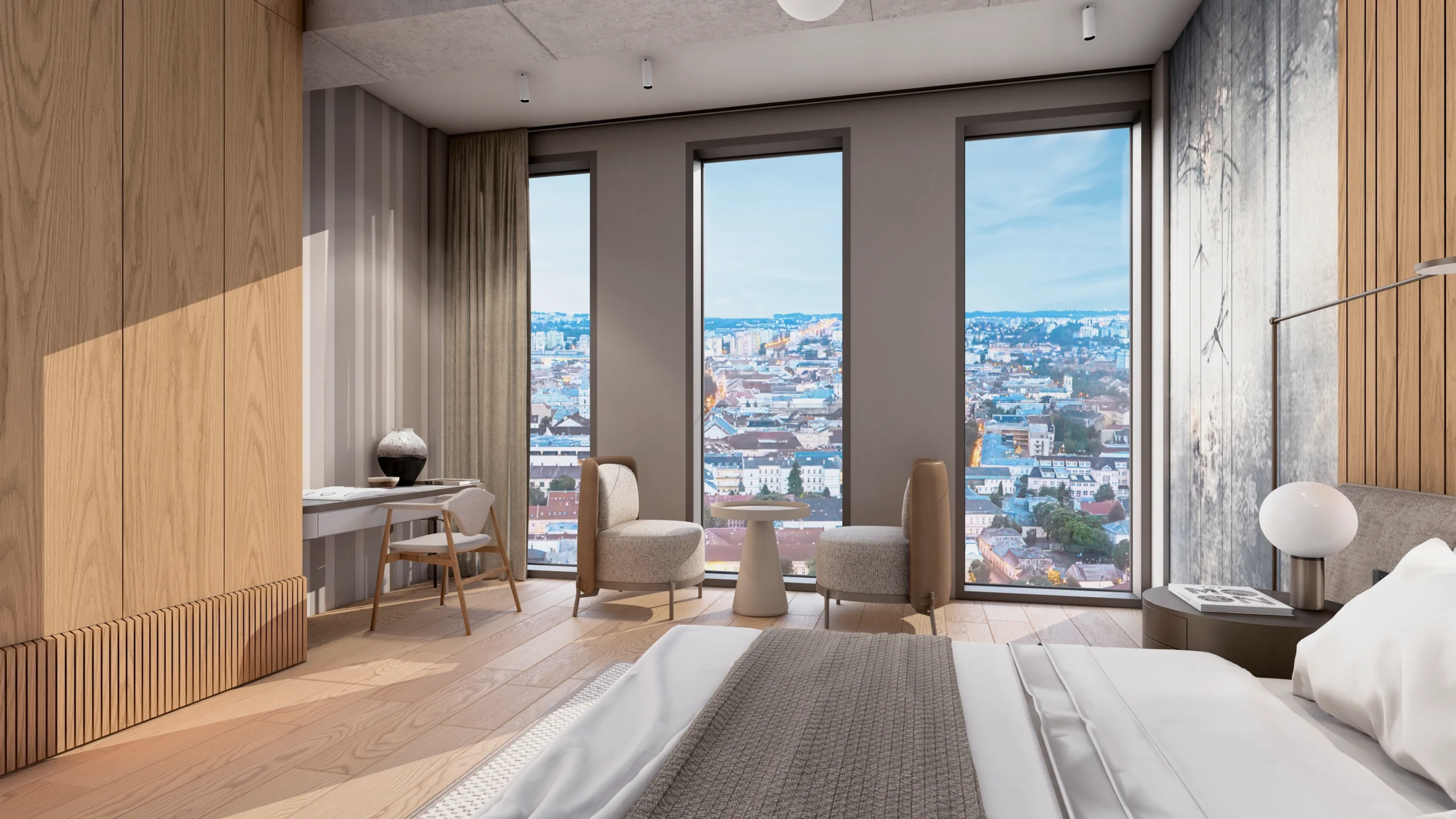 City Tower pozostáva z dvoch samostatných budov – pätnásťpodlažnej veže a osempodlažného apartmánového domu. Rezidenčná časť je doplnená o obchodné priestory a parkovacie kapacity, ktoré sú riešené priamo v rámci projektu. Menší rozsah projektu a spoločné priestory sú navrhnuté s cieľom podporiť komunitný charakter bývania pri zachovaní súkromia obyvateľov. Projekt počíta s moderným technologickým štandardom a vybavenosťou zameranou na komfort každodenného života.