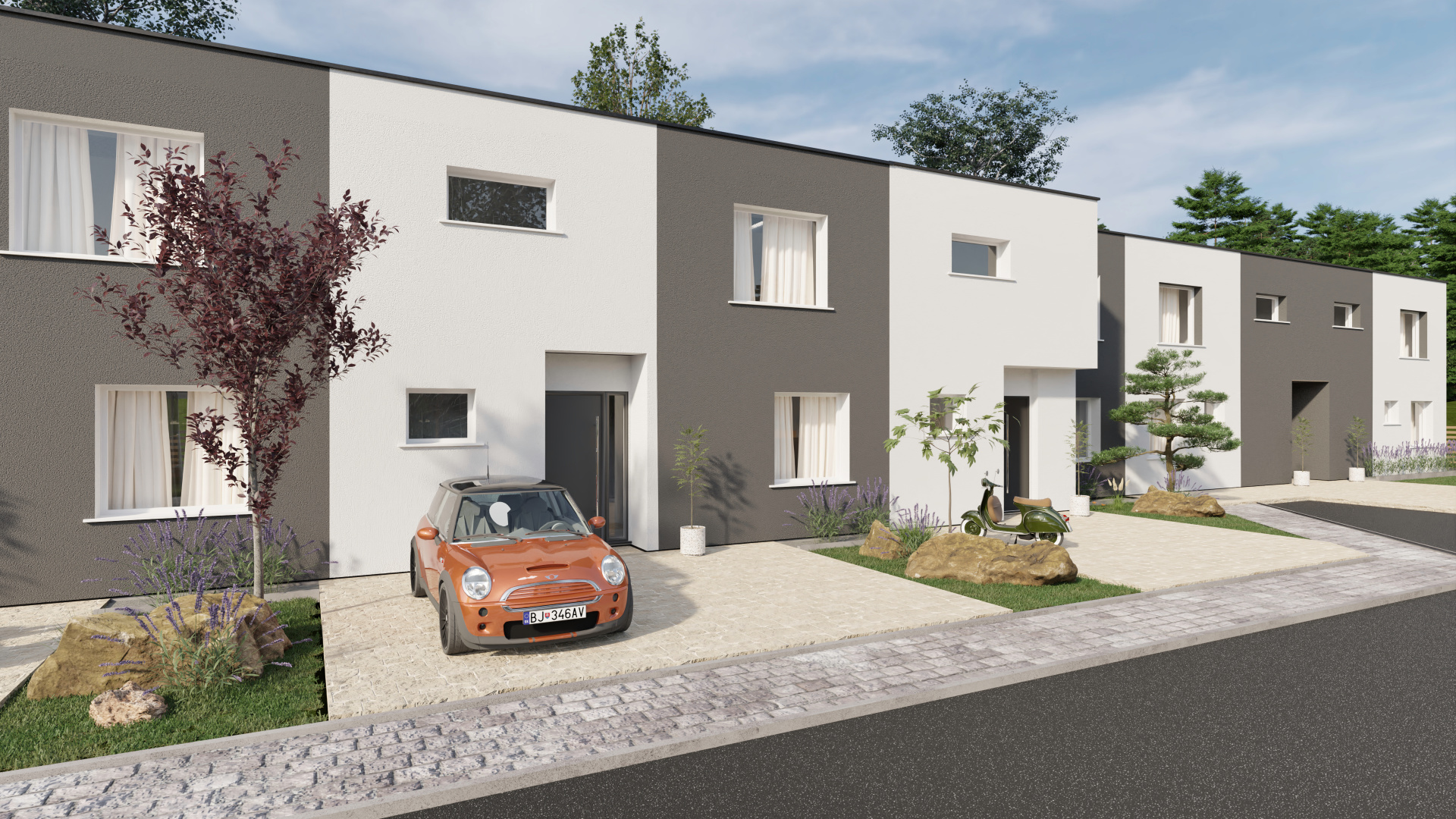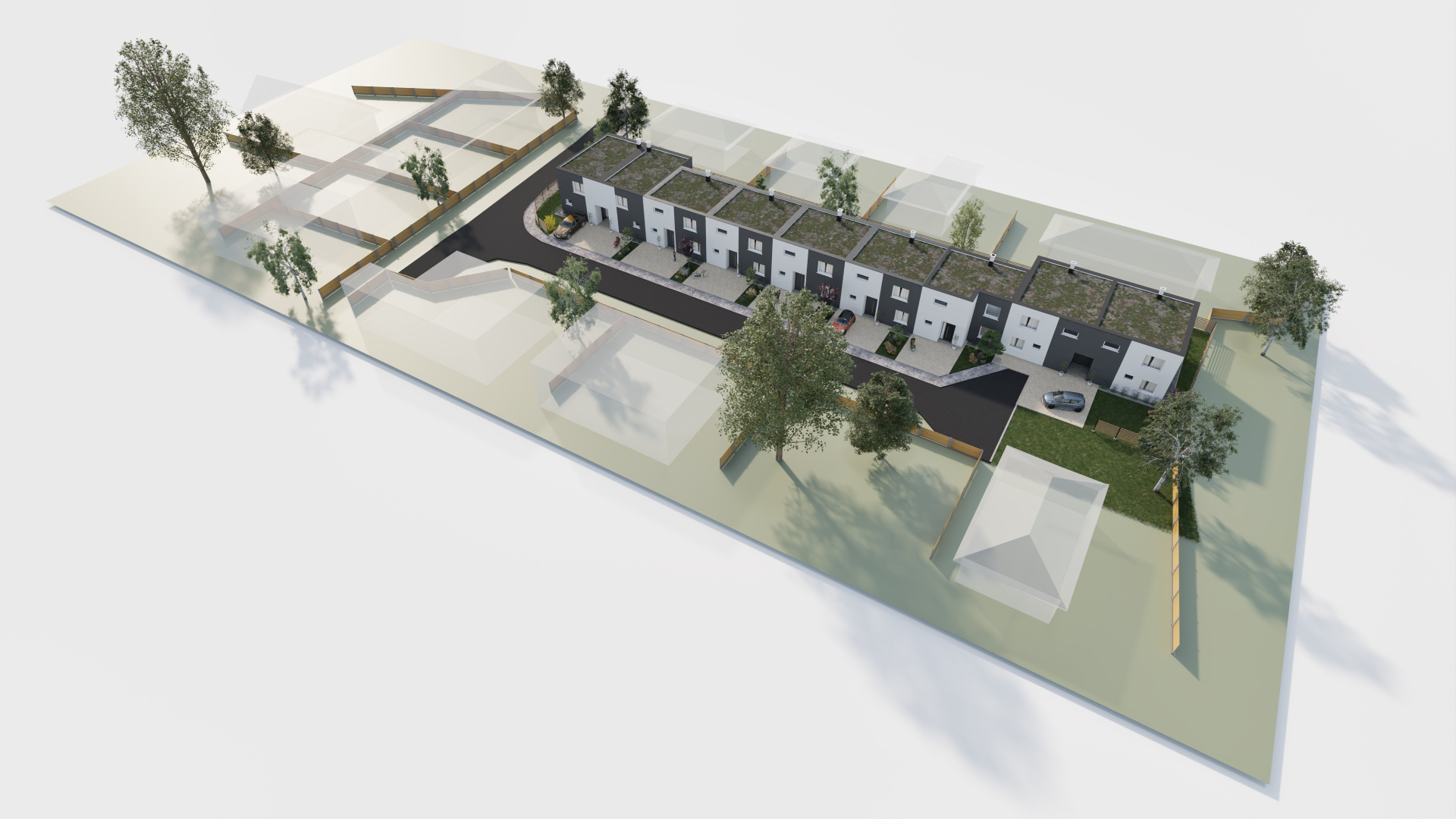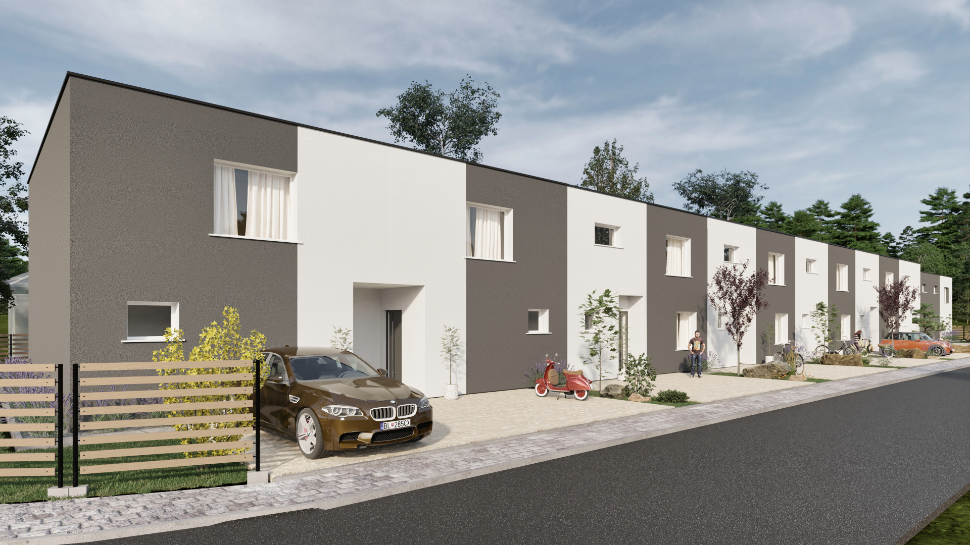 Domy sú dvojpodlažné, nepodpivničené, s úžitkovou plochou približne 127 m² a pozemkami o výmere 180 – 200 m². Každý dom disponuje dvoma parkovacími miestami, oploteným pozemkom a vydláždeným parkovacím státím. Vykurovanie je riešené systémovým teplovodným podlahovým vykurovaním s tepelným čerpadlom, čo zabezpečuje nízke mesačné náklady a energetickú triedu A0.