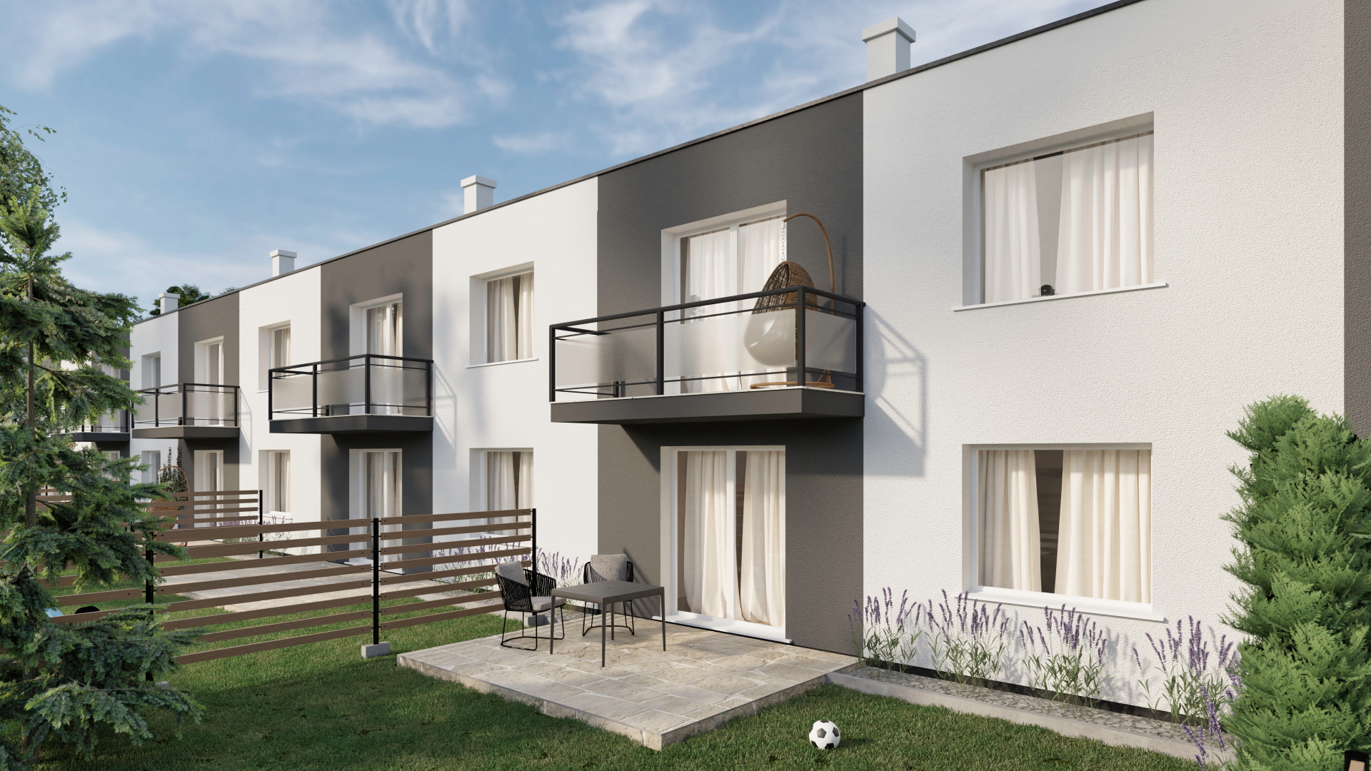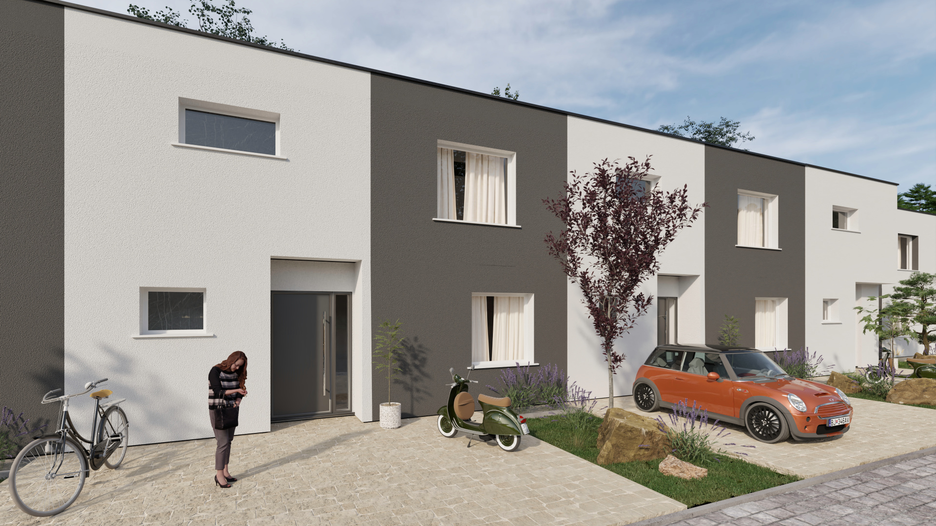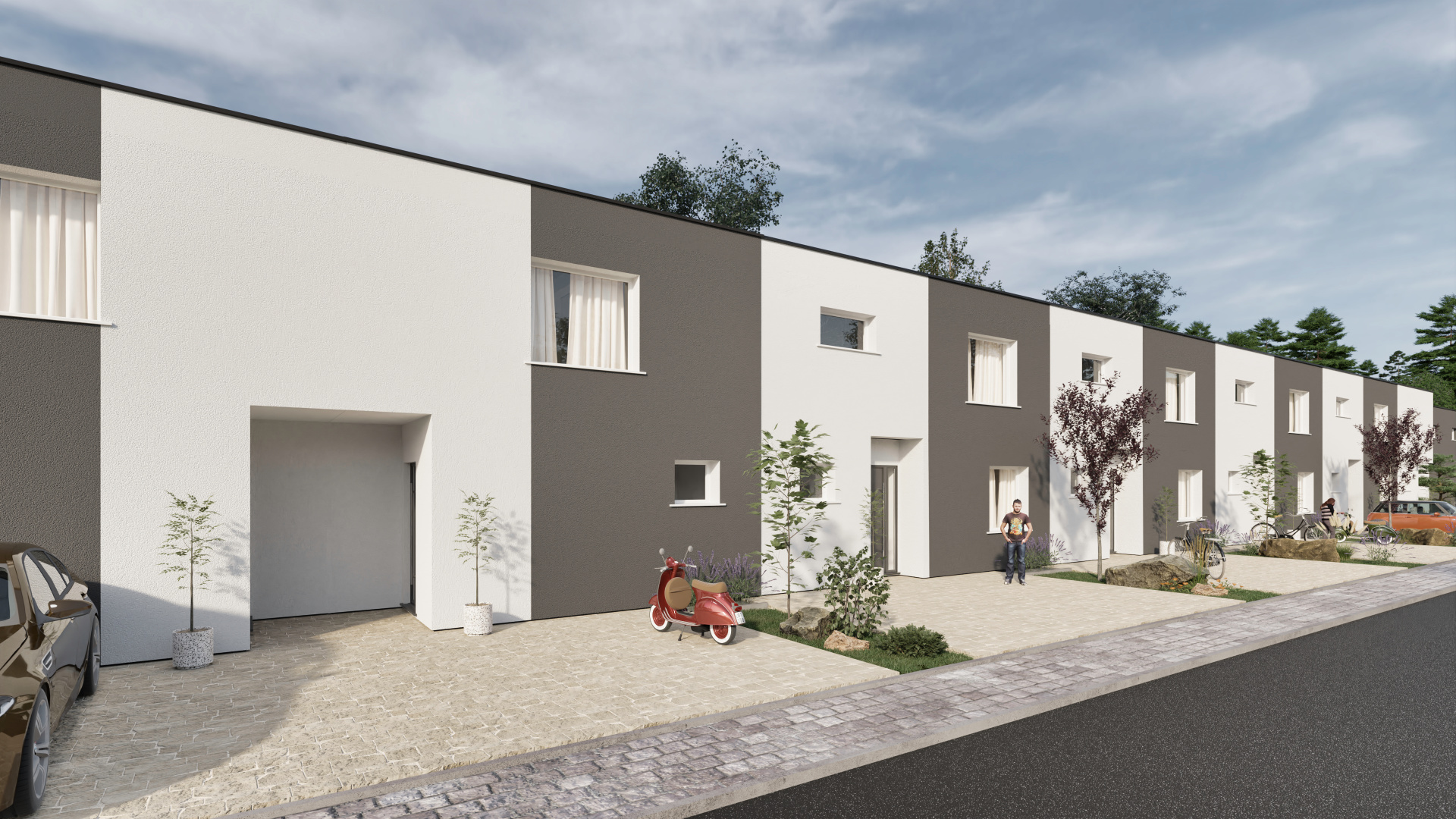 Domy sú dvojpodlažné, nepodpivničené, s úžitkovou plochou približne 127 m² a pozemkami o výmere 180 – 200 m². Každý dom disponuje dvoma parkovacími miestami, oploteným pozemkom a vydláždeným parkovacím státím. Vykurovanie je riešené systémovým teplovodným podlahovým vykurovaním s tepelným čerpadlom, čo zabezpečuje nízke mesačné náklady a energetickú triedu A0.