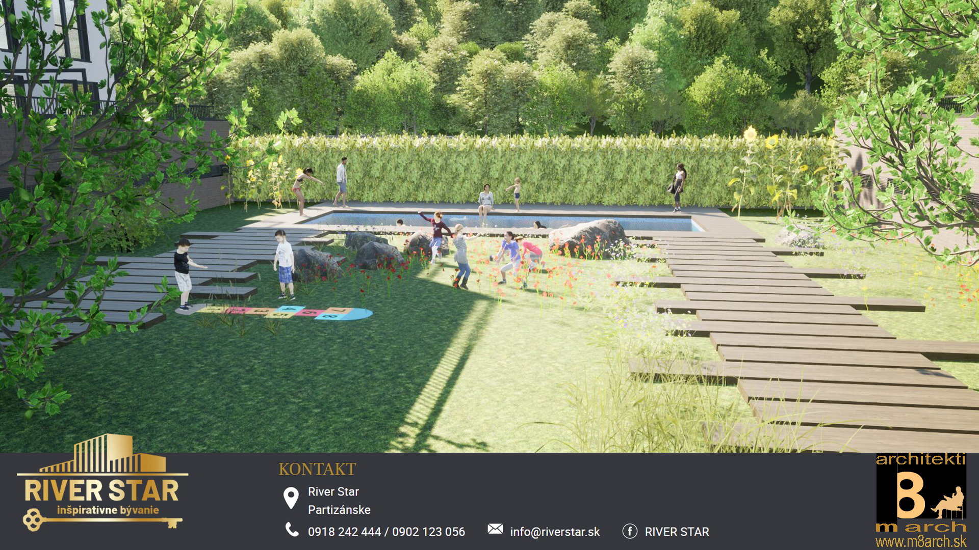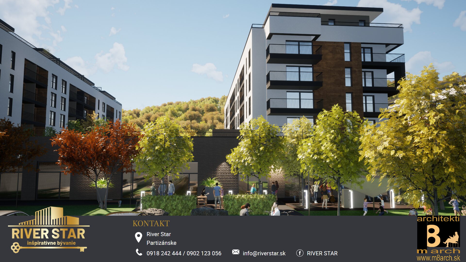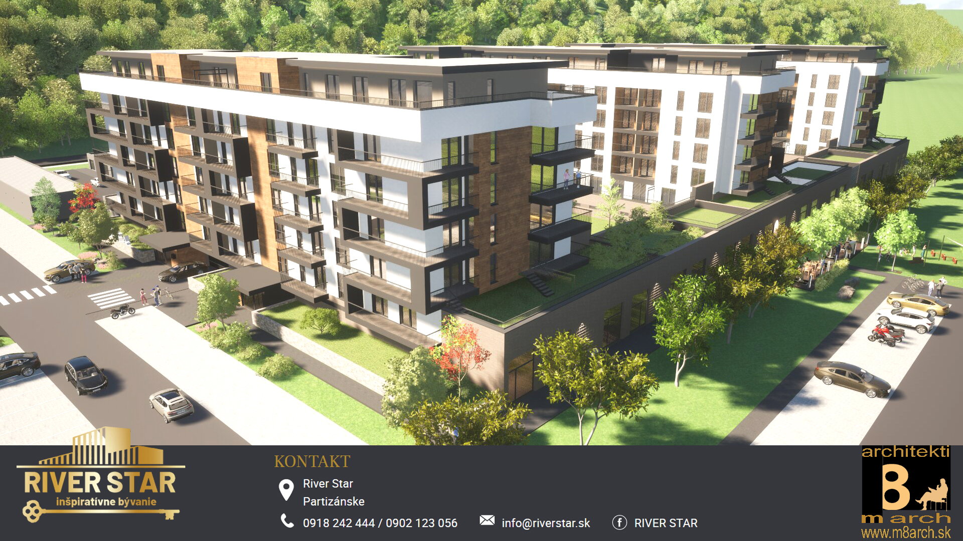 River Star v Partizánskom je nový bytový komplex v tichej časti mesta na začiatku sídliska Šípok. Leží na ulici Za riekou Nitrou, s riekou z jednej strany a pohorím Šípok z druhej; do centra prídete pešo približne za 10 minút. Koncept mieri na komfortné bývanie bez kompromisov a spojenie s prírodou. Pre etapu A bolo 15.04.2025 vydané stavebné povolenie (právoplatné od 01.05.2025) a štart výstavby je naplánovaný na jeseň 2025.