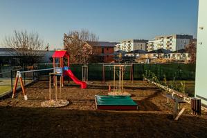 Spoločné exteriérové priestory zahŕňajú detské ihrisko, altánok s posedením, exteriérový fitness workout a sadové úpravy od záhradného architekta. Bezpečnosť zabezpečuje kamerový systém monitorujúci parkoviská, vstupy do bytových domov a spoločné priestory.