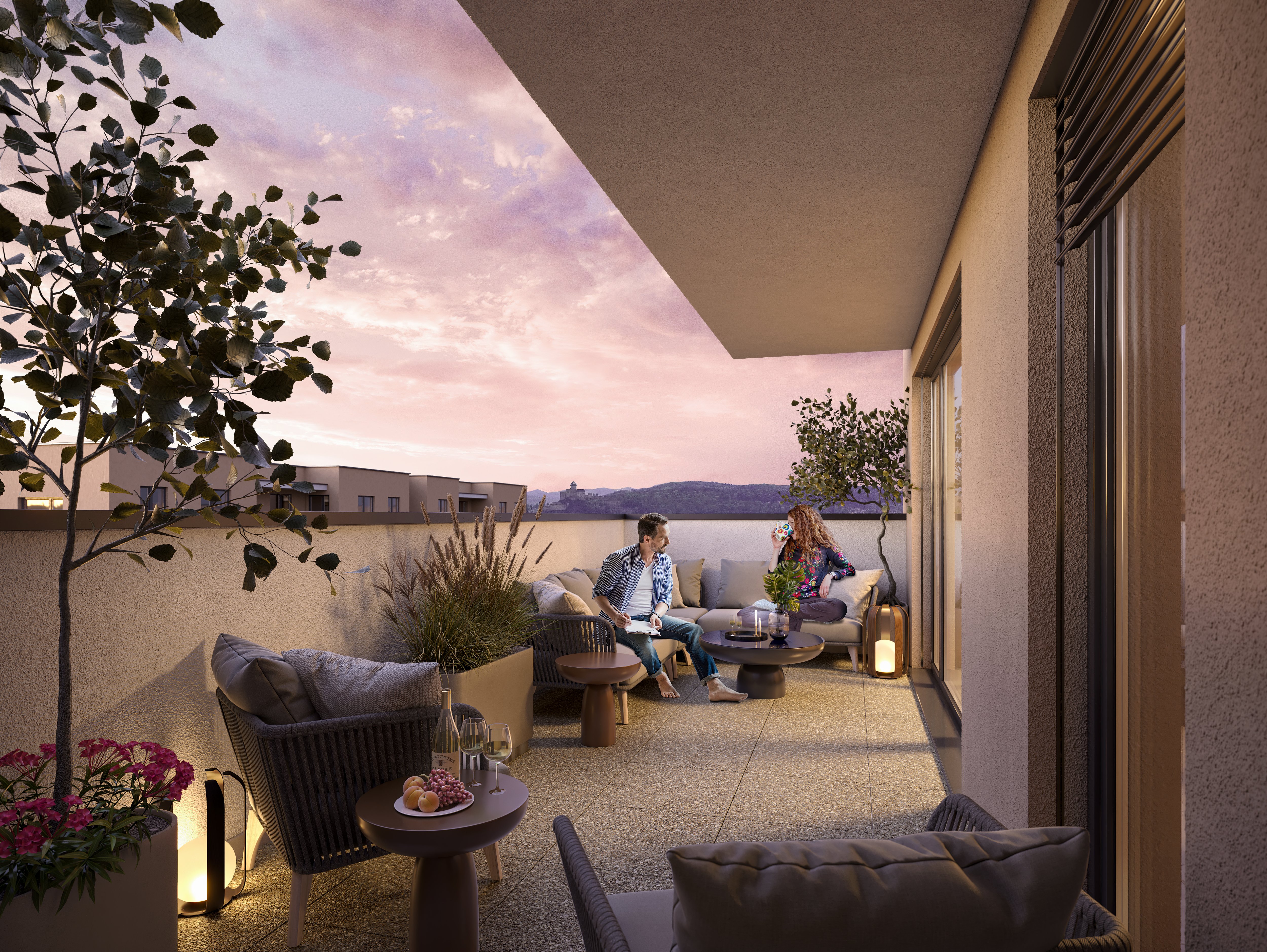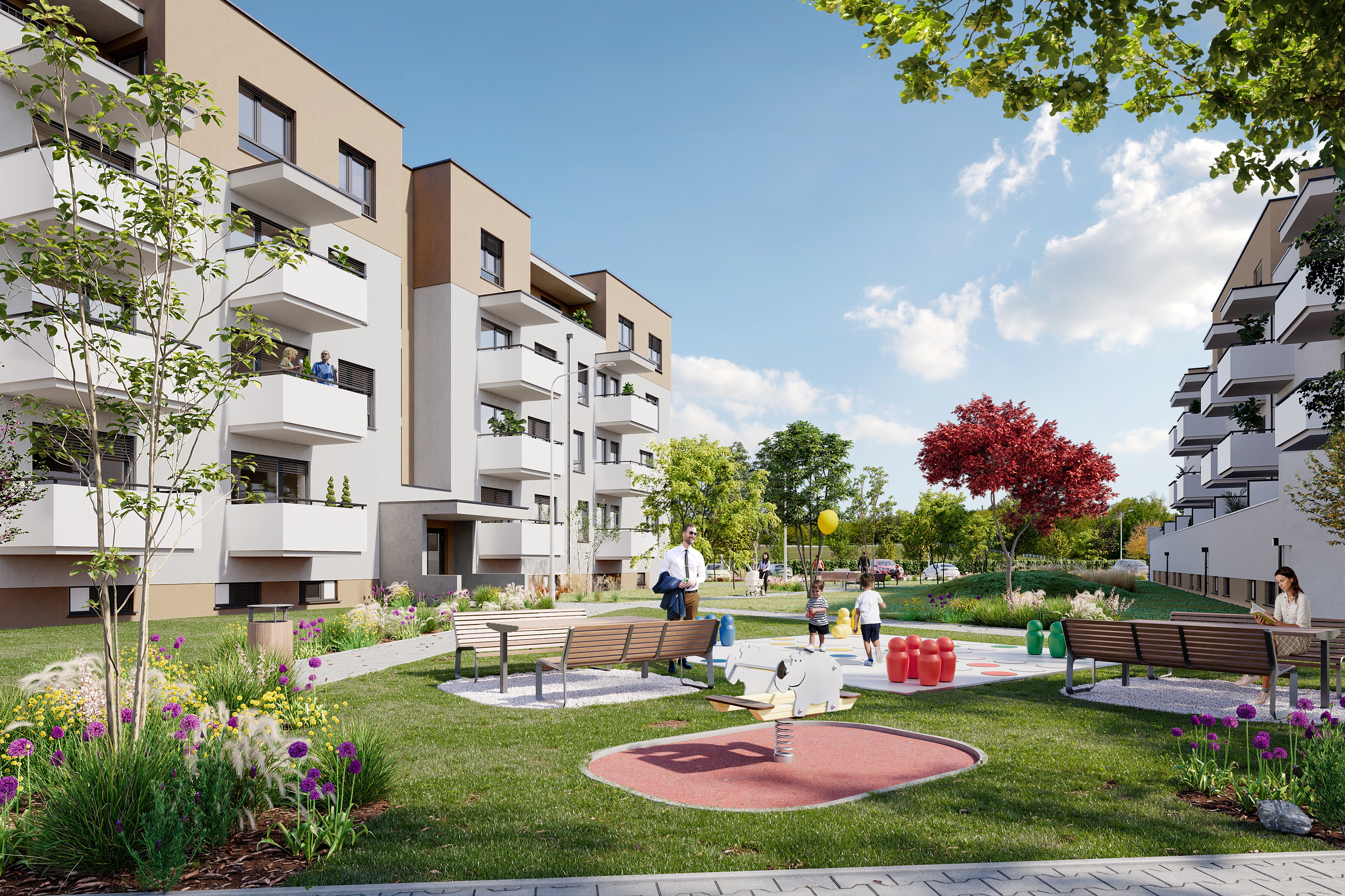 Byty majú moderné dispozície, veľké balkóny alebo terasy a sú vybavené rekuperáciou a prípravou na exteriérové žalúzie. Rodinné domy ponúkajú veľkorysé záhrady a dôraz na súkromie. Lokalita podporuje ekologické bývanie – štandard A0 zahŕňa tepelné čerpadlá a vetracie jednotky s rekuperáciou. K dispozícii je aj nadštandardné vyhotovenie podľa vlastného výberu.